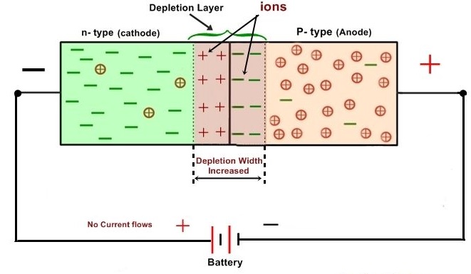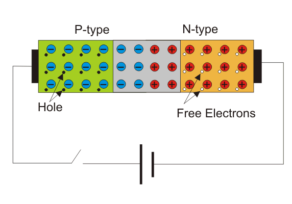 Eğer bir diyota dışarıdan bir gerilim uygulanmaz ise N tipi maddedeki serbest elektronlar, P tipi maddeye geçerek boşlukları dolduracaktır. Bu işlem sonucu P ve N tipi maddelerin birleştiği noktadaki yük taşıyıcılar nötrleşecektir ve depletion denilen nötr bölge oluşacaktır.