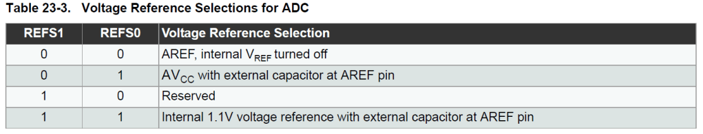 REFS1:0 : Bu bitleri referans voltajı seçerken kullanırız. Değerleri aşağıdaki tablodaki gibidir.