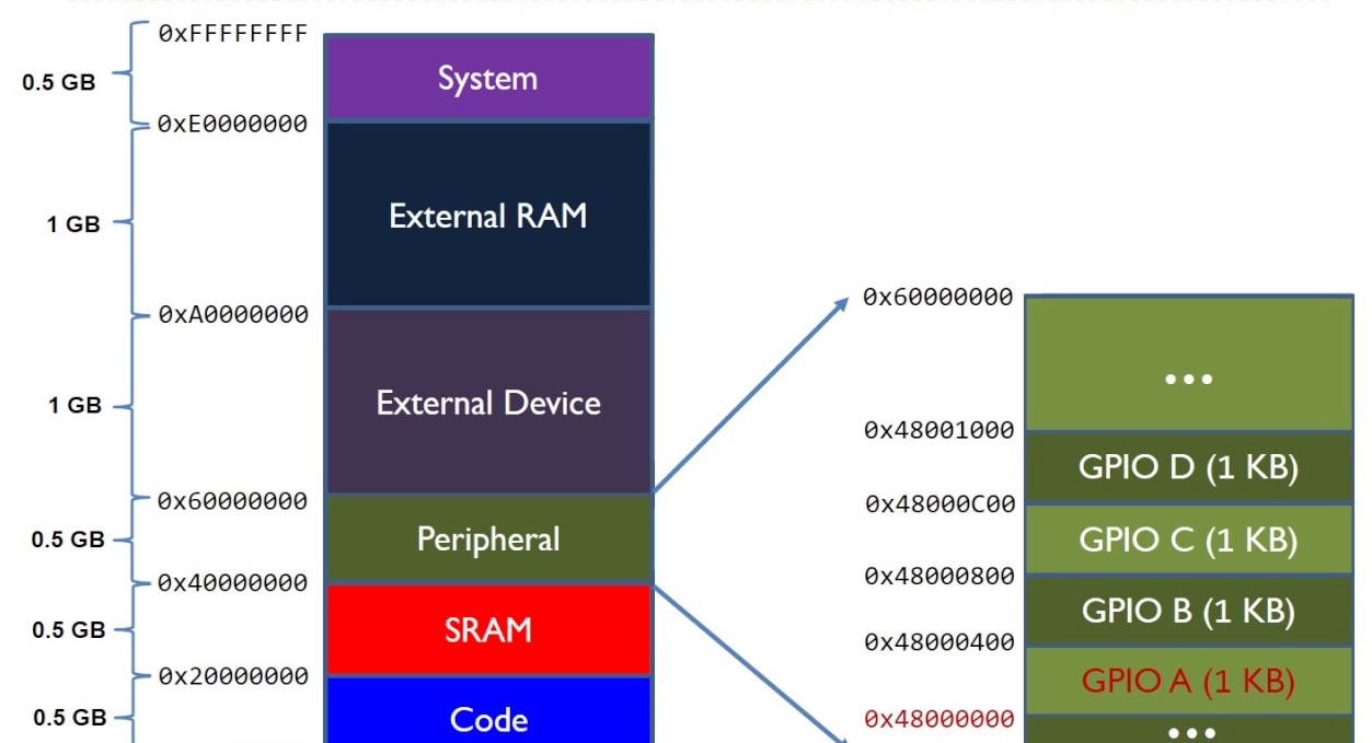 In programming microcontrollers for different type of duties such as: timing, communicating with other units, or sampling an analogue signal; we use peripherals like: ADCs, timers, communication peripherals (SPI, I2C, USART etc). These peripherals have different type of registers such as: data registers, status registers and control registers. The usage of the word “register” may seem confusing because it is used also for CPU registers like: R0-R12, PC and LR. However, here “register” means addresses of peripherals in memory mapped IO.